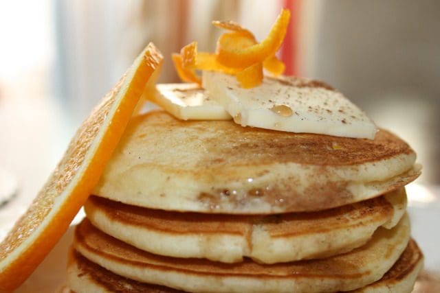 Put liquid into a measuring cup and pour similar size pancakes on the greased sauté pan. Flip and repeat processes 4 and 5 until all the pancakes have been made.